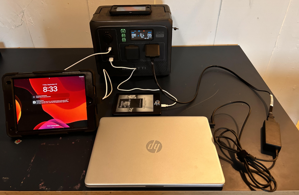 So, here’s what I put it through: Starting small, from 68% available charging power, I plugged in my iPhone (at 56%) and an older generation Kindle (at 64%). After one hour, the phone was at 96%, the Kindle at 95%, and the power station at 60%. Pretty easy-peezy. Then, let’s charge up that iPad at 30%. At the 2-hour mark, the iPad was at 84%, and the station at 41%.