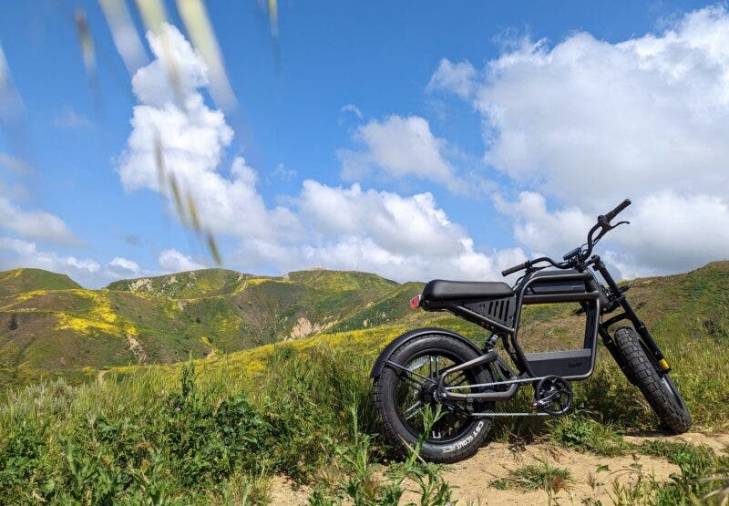 Technically it’s an electric bike with pedals and the like, but is also packing moped-style tires, a set of blinkers, a horn, motorcycle headlight, all built on top of a motorcycle-style frame. It definitely looks more like a motorcycle than your mom’s beach cruiser of yesteryear. Let’s dive in.
