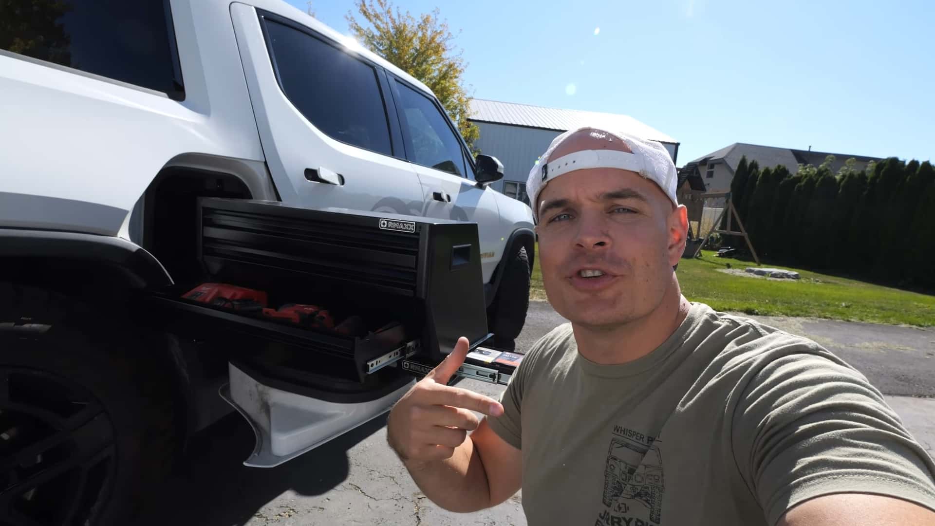 Famous smartphone durability tester Zack Nelson, better known as JerryRigEverything, has a Rivian R1T and fitted just one half of EV Sportline’s drawer system in his truck, as you can see in the video embedded below. The problem is that the system is designed to be bolted on both sides of the Gear Tunnel so that the boxes don’t tip over when fully extended.
