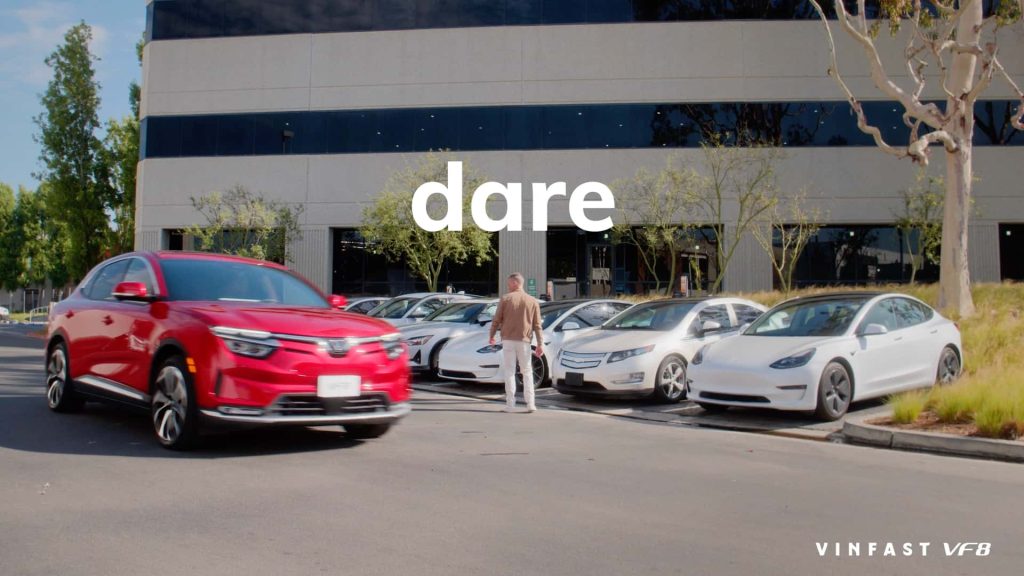 Harnessing the wave it rode up, VinFast has introduced a new advertisement campaign to help bring awareness to its electric crossover, the VF8. Partnering with actor Joey Lawrence, the advertisement shows off a shiny red VF8 cruising by five white EVs (Ford Mustang Mach-E, Polestar 2, and two Tesla Model 3s) and a PHEV (Chevrolet Volt) at a charging station.